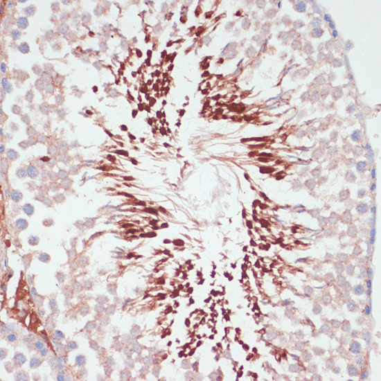 Immunohistochemistry of paraffin-embedded rat testis using PGK2 antibody. |