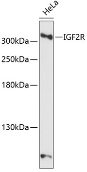 Western blot analysis of extracts of HeLa cells, using IGF2R antibody.