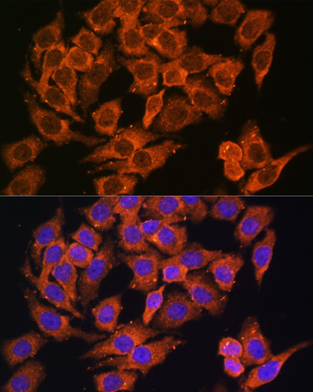 Immunofluorescence analysis of HeLa cells using MYO6 antibody. |