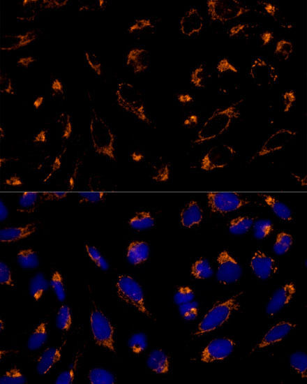 Immunofluorescence analysis of U-2 OS cells using PRDX3 Polyclonal Antibody. |