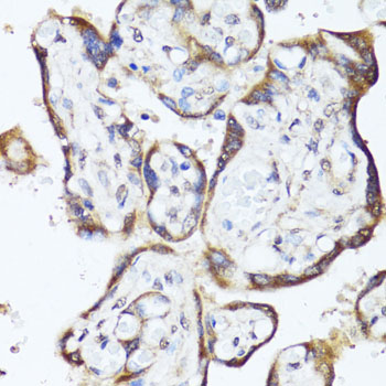 Immunohistochemistry of paraffin-embedded human placenta using GKN1 antibody.