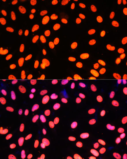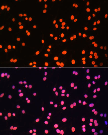 Immunofluorescence analysis of NIH-3T3 cells using ZNF581 Polyclonal Antibody. |