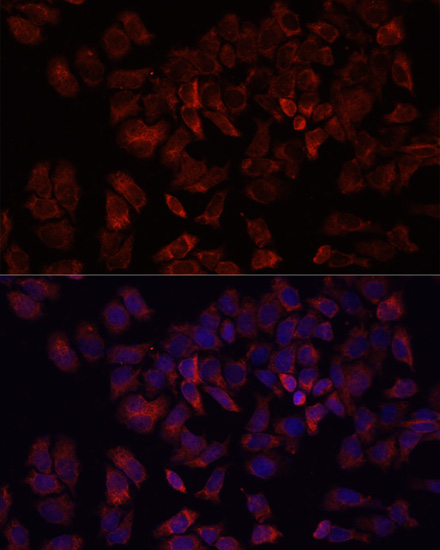 Immunofluorescence analysis of HeLa cells using ARF5 antibody. |