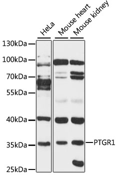 Western blot analysis of extracts of various cell lines, using PTGR1 antibody. |