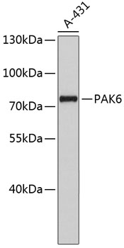 Western blot analysis of extracts of A-431 cells, using PAK6 antibody. |