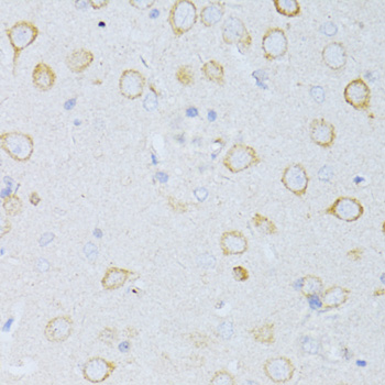 Immunohistochemistry of paraffin-embedded rat brain using CD63 antibody.