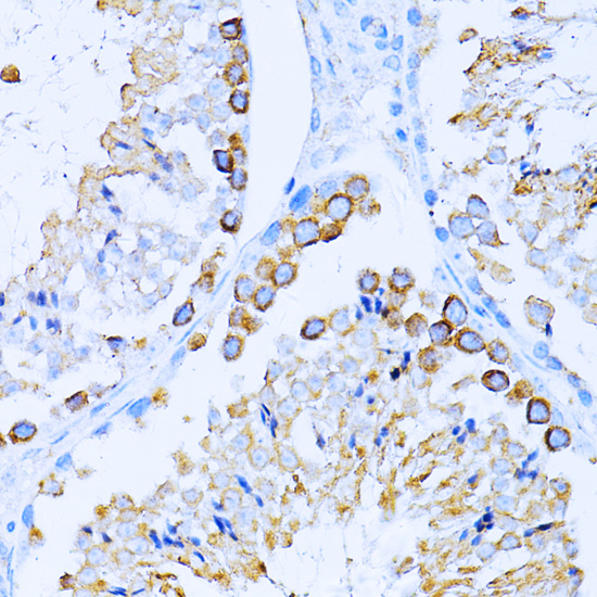 Immunohistochemistry of paraffin-embedded mouse testis using CD63 antibody. |