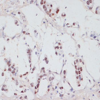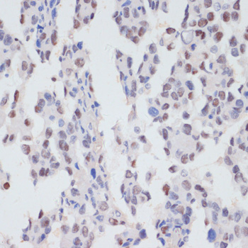 Immunohistochemistry of paraffin-embedded human lung cancer using Phospho-SRF-S103 antibody. |
