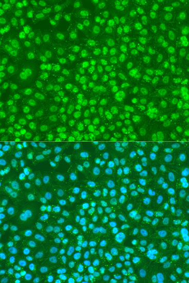 Immunofluorescence analysis of U2OS cells using Phospho-FANCG-S383 antibody. |