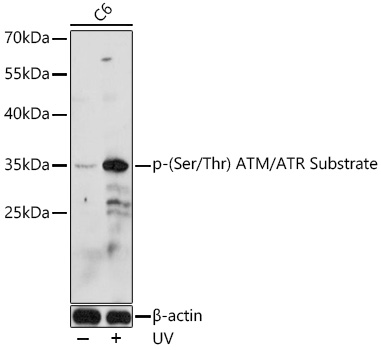 Western blot analysis of extracts of C6 cells, using Phospho-(Ser/Thr) ATM/ATR Substrate pAb. |