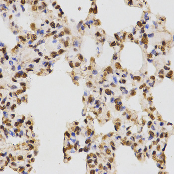 Immunohistochemistry of paraffin-embedded rat lung using Asymmetric DiMethyl-Histone H3-R17 antibody. |