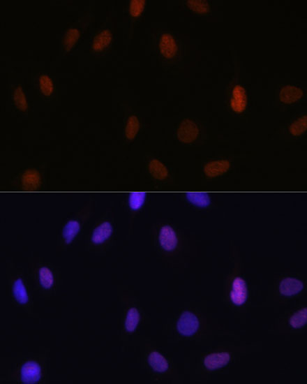 Immunofluorescence analysis of U-2 OS cells using MonoMethyl-Histone H3-K14 pAb. |