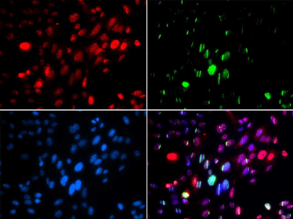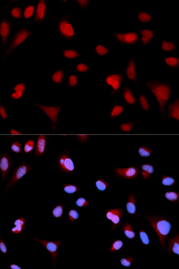Immunofluorescence analysis of U2OS cells using Phospho-ABL1-Y204 antibody. |