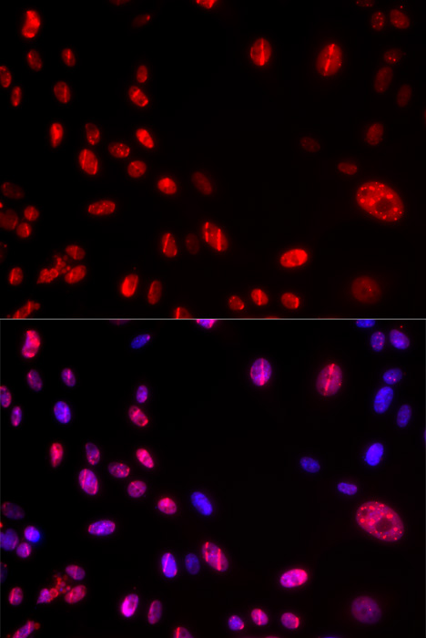 Immunofluorescence analysis of U2OS cells using Phospho-ATM-S1981 antibody. |