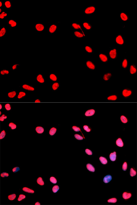 Immunofluorescence analysis of MCF-7 cells using Phospho-CCNE1-T395 antibody. |