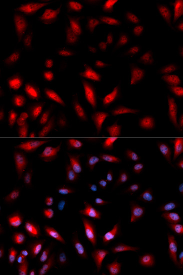 Immunofluorescence analysis of U2OS cells using Phospho-HSPB1-S82 antibody. |