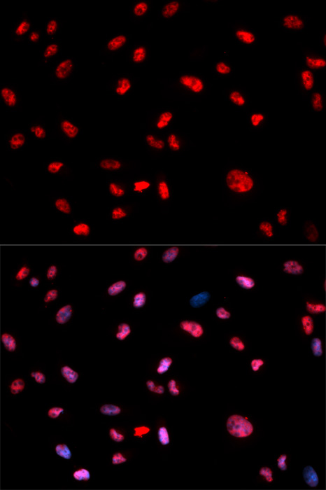 Immunofluorescence analysis of U2OS cells using Phospho-Jun-T239 antibody. |