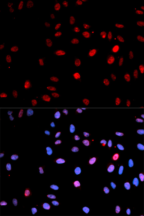 Immunofluorescence analysis of U2OS cells using Phospho-p53-S15 antibody. |