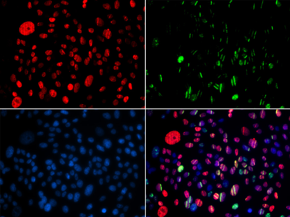 Immunofluorescence analysis of U2OS cells using Phospho-SMC1A-S957 antibody.