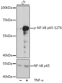 Western blot analysis of extracts of C6 cells, using Phospho-NF-kB p65-S276 pAb.