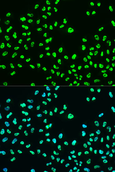 Immunofluorescence analysis of U2OS cells using Phospho-BRCA1-S988 antibody. |