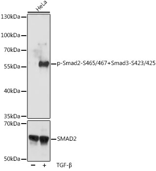 This product is a high quality Phospho-Smad2-S465/467 + Smad3-S423/425 pAb.
