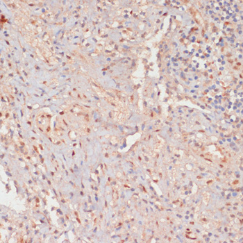 Immunohistochemistry of paraffin-embedded human lung cancer using Phospho-PPP1CA-T320 antibody. |
